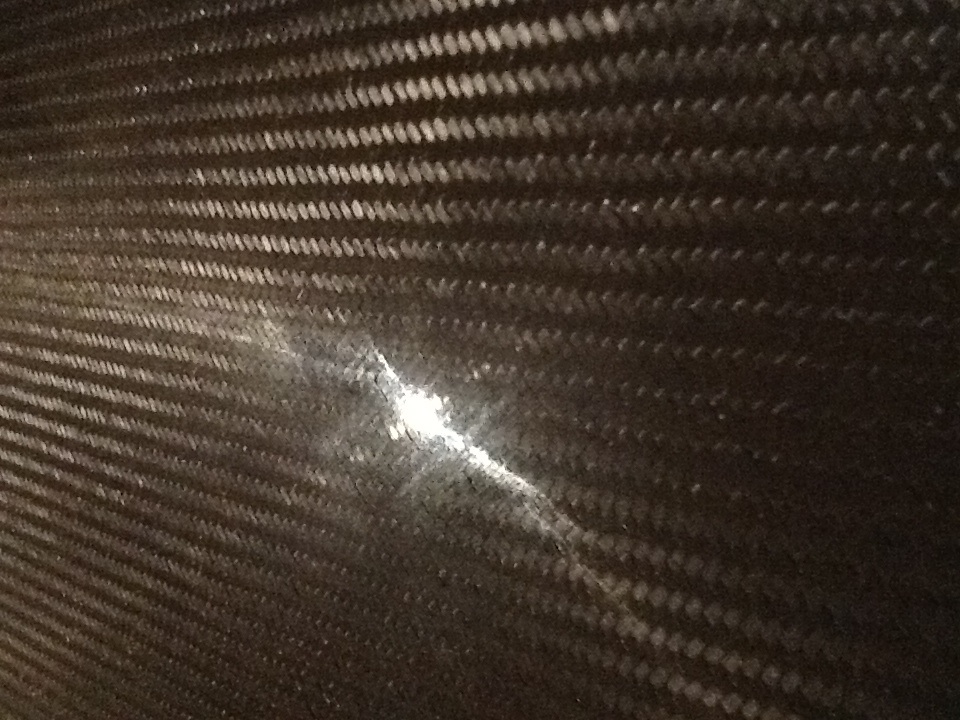 When the infusion was complete, I clamped off the resin feed tube and left the vacuum hose unclamped ( pump running) for several minutes as I was concerned that the part was resin rich and that some air bubbles were still entrained towards the vacuum end of the infusion. I think this may have removed too much resin from the laminate causing vacuum voids in the weave of the carbon next to the surface. I'm pretty confident that the bag was leak free as I had no issue during the vac drop test.