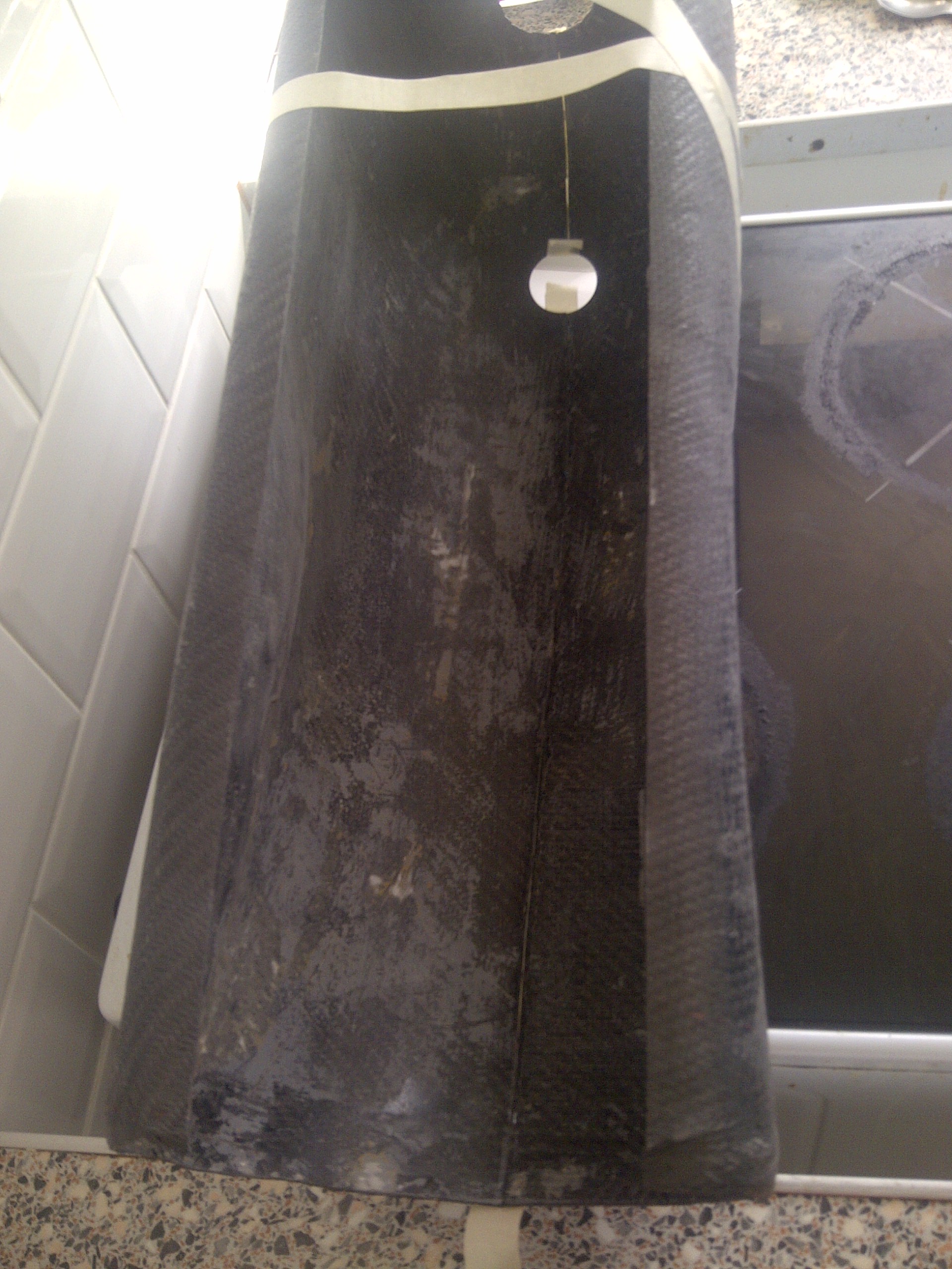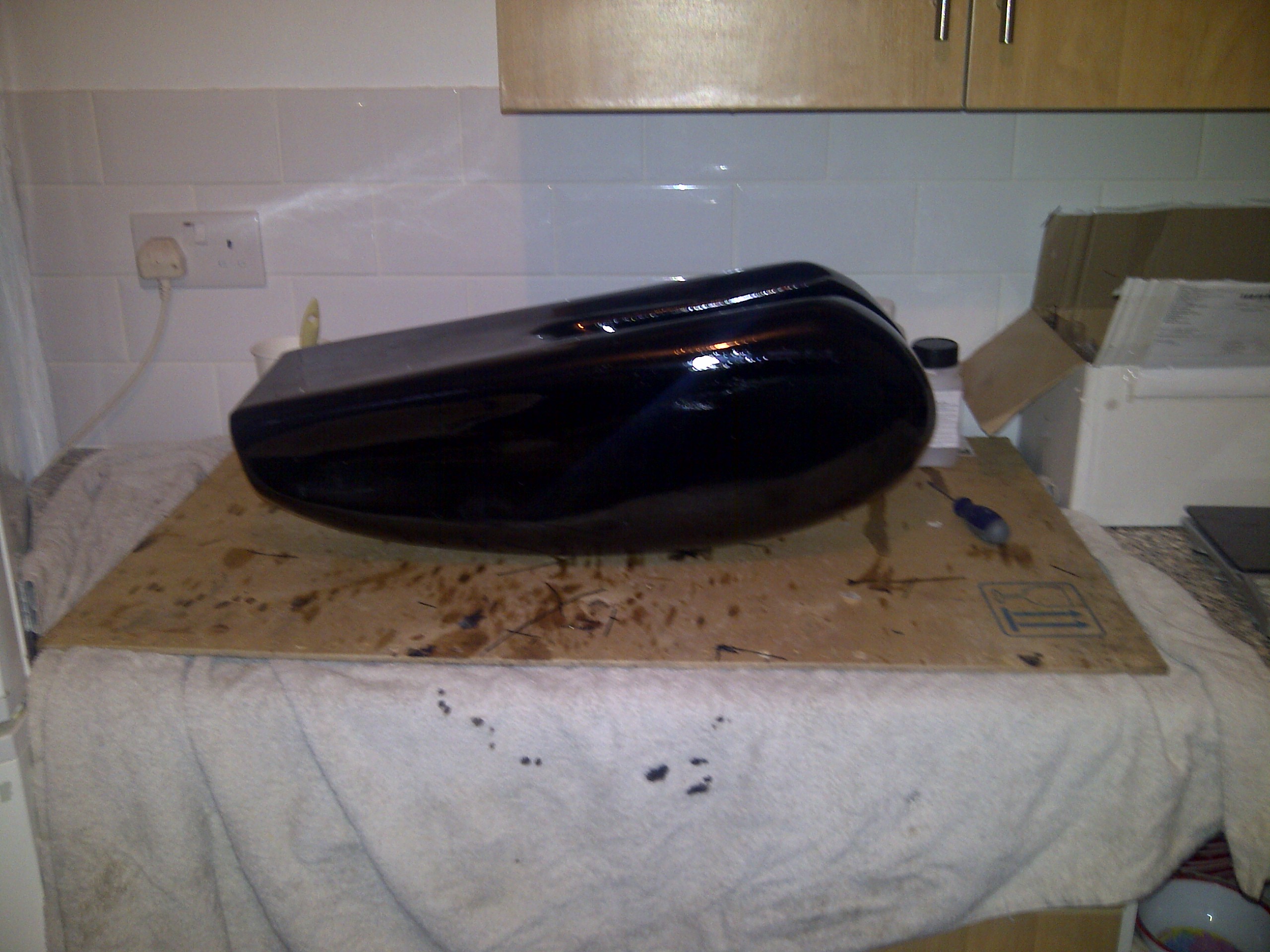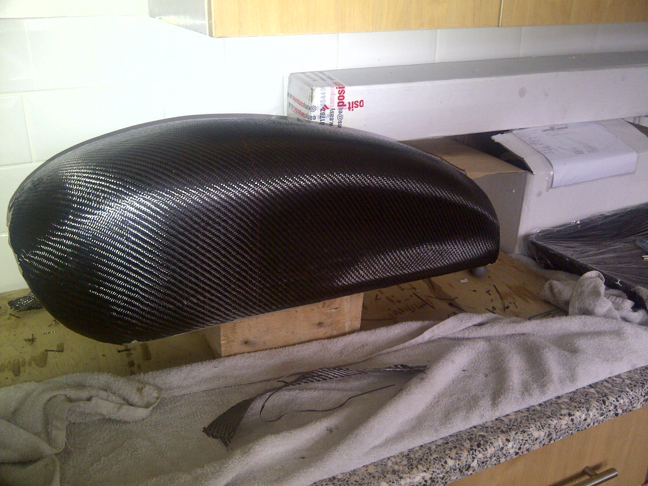 ready to add the filler neck and fuel line nipple before some kevlar layers , the hole lot will be coated with creswell or flowliner before its joined back together and another layer of kevlar and finished off with a red / black carbon.