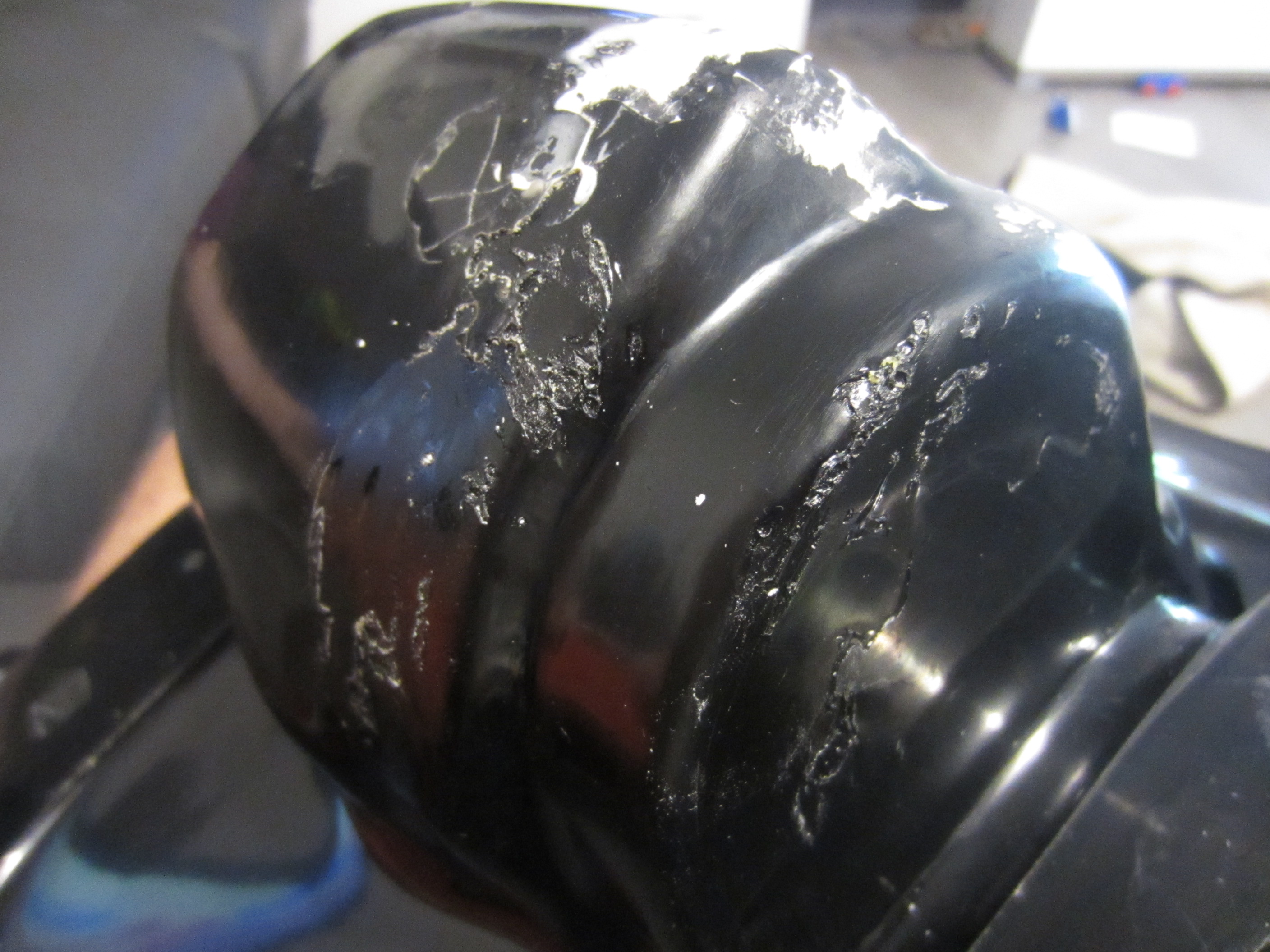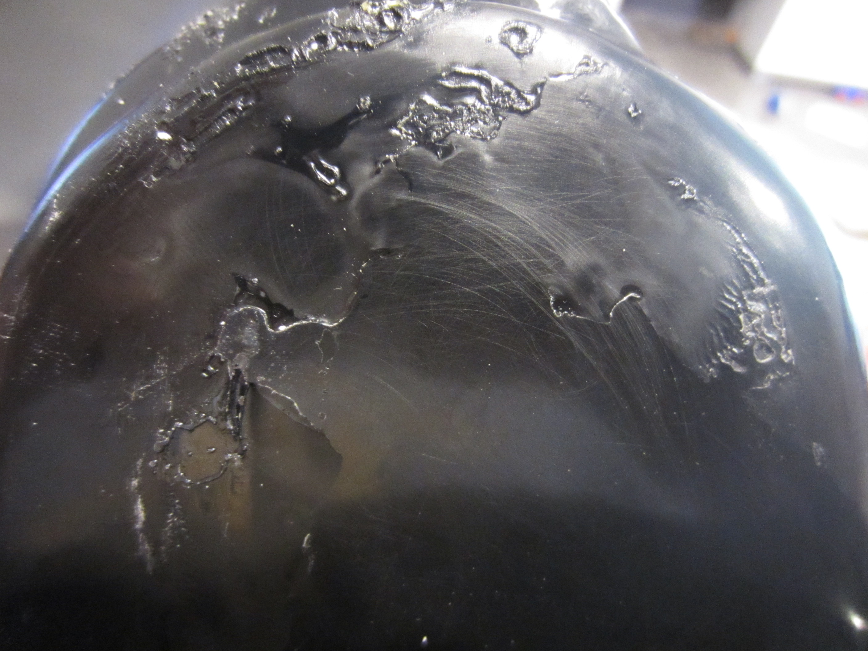 To answer your questions, I followed the tutorial, but there was a crack on the surface, so I filled it with the yellow filling wax and gel coated it over. And I think you're right, with the exotherm kicking in the wax melted and reacted with the release agent and gel coat.