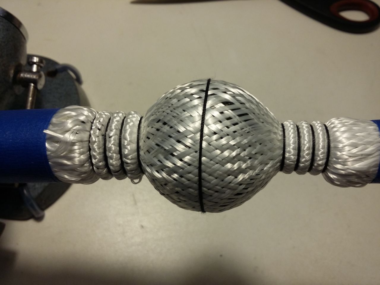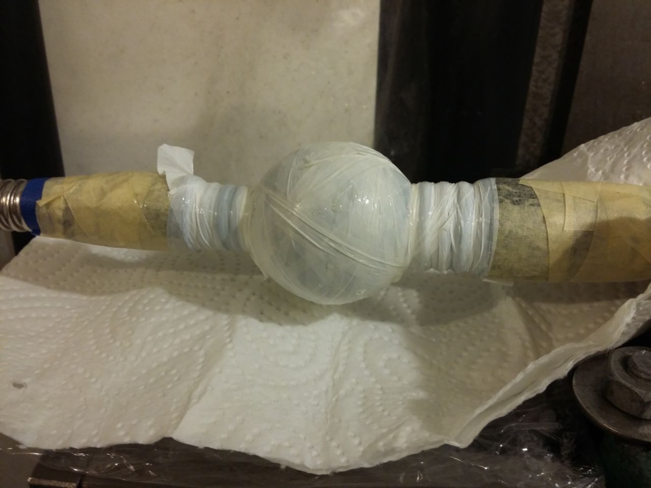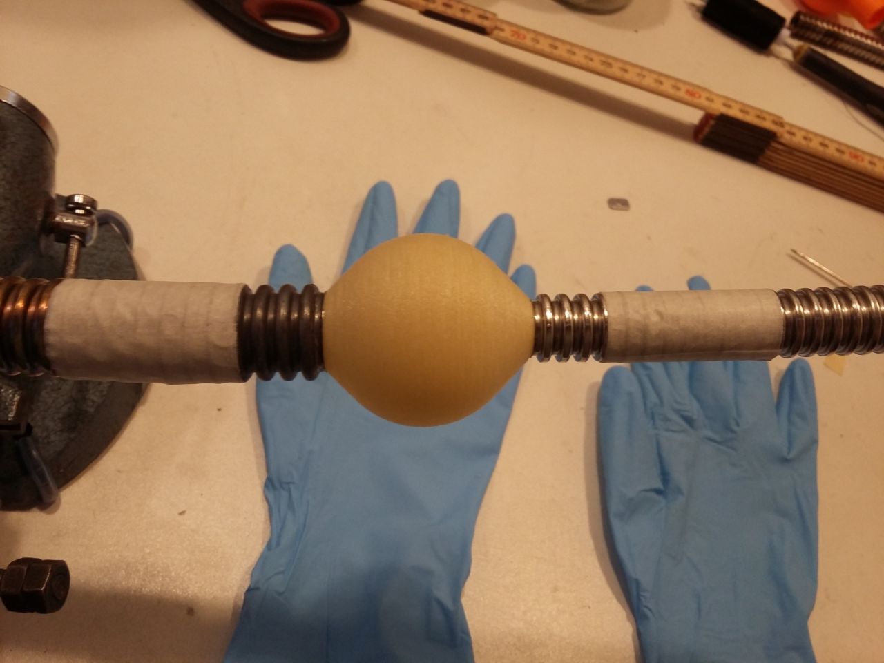 I have this project where I need a ball or sphere between 2 corrugated stainless steel tubes, made from a lightweight and heat-resistant material and my best idea was to use carbon and glass fiber with Easy Composites "Very High Temperature Epoxy Laminating Resin". The current stage of the project is where I have cast the first real test with the following: