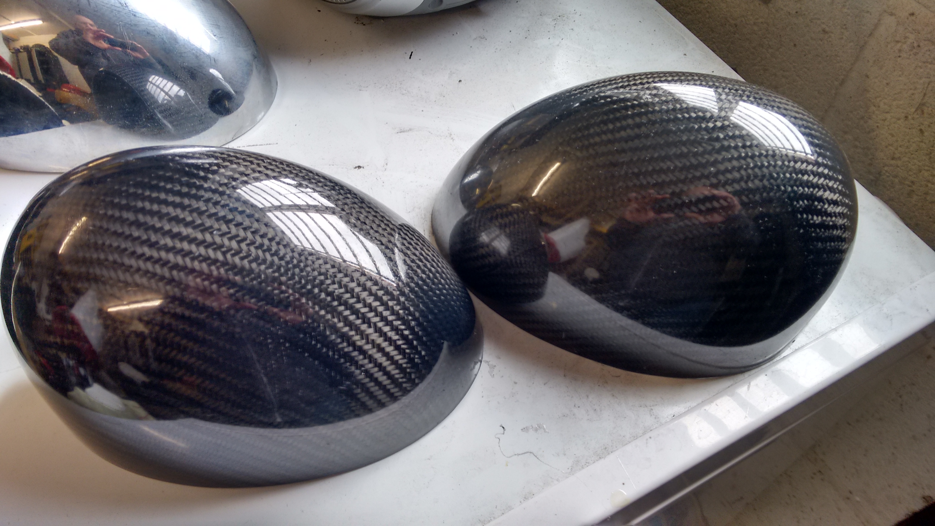 Hope this is OK to post but I have a pair of Mini mirror cover moulds for sale including a pair of carbon covers made from the moulds plus a pair of chrome mirror covers. The carbon covers where made by infusion without using an in mould coating and the moulds are also suitable to use with pre preg and wet lay, I am happy to offer advice on how to produce covers using infusion to the buyer and the moulds are in excellent condition. The price is £140 plus postage.