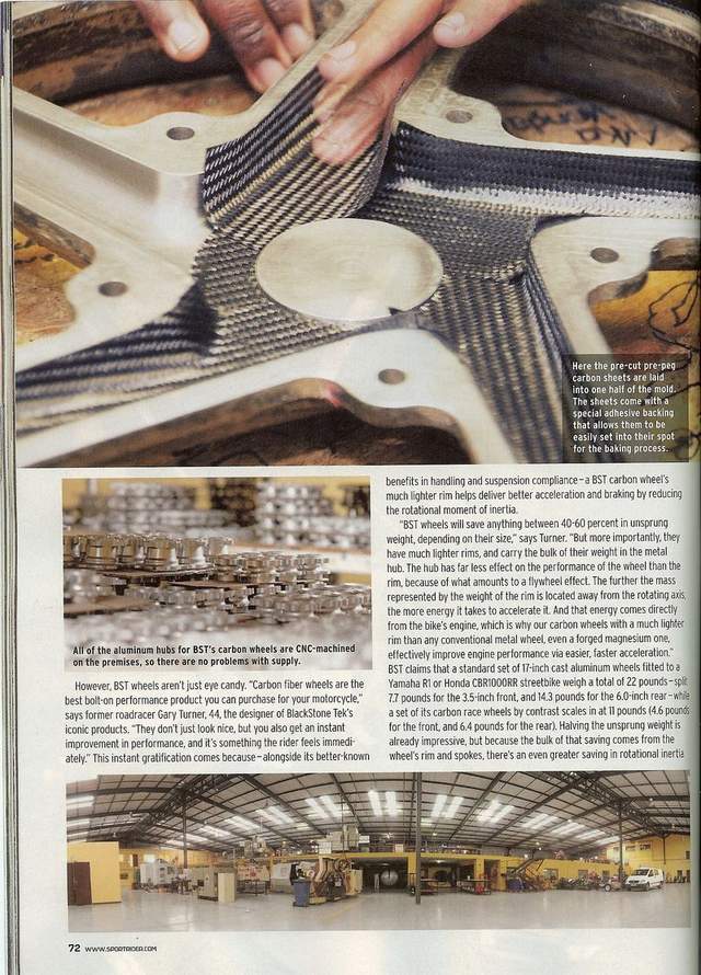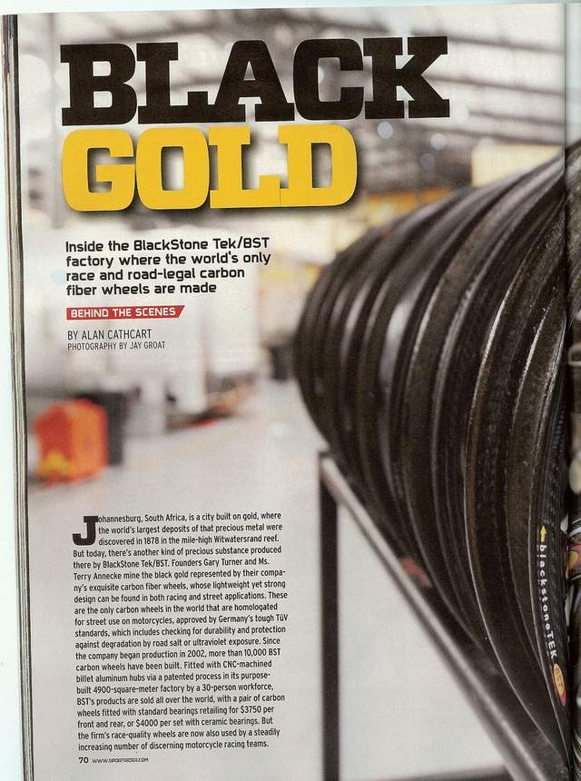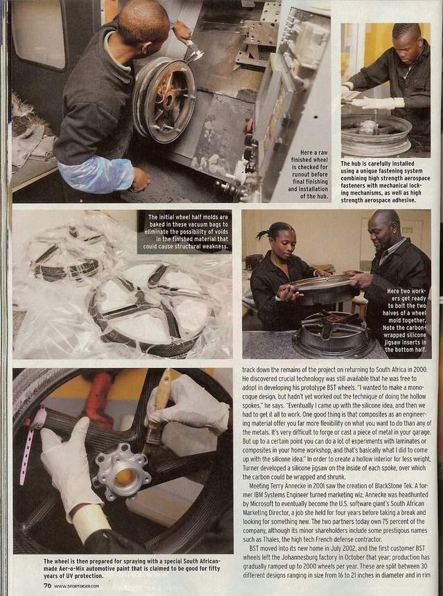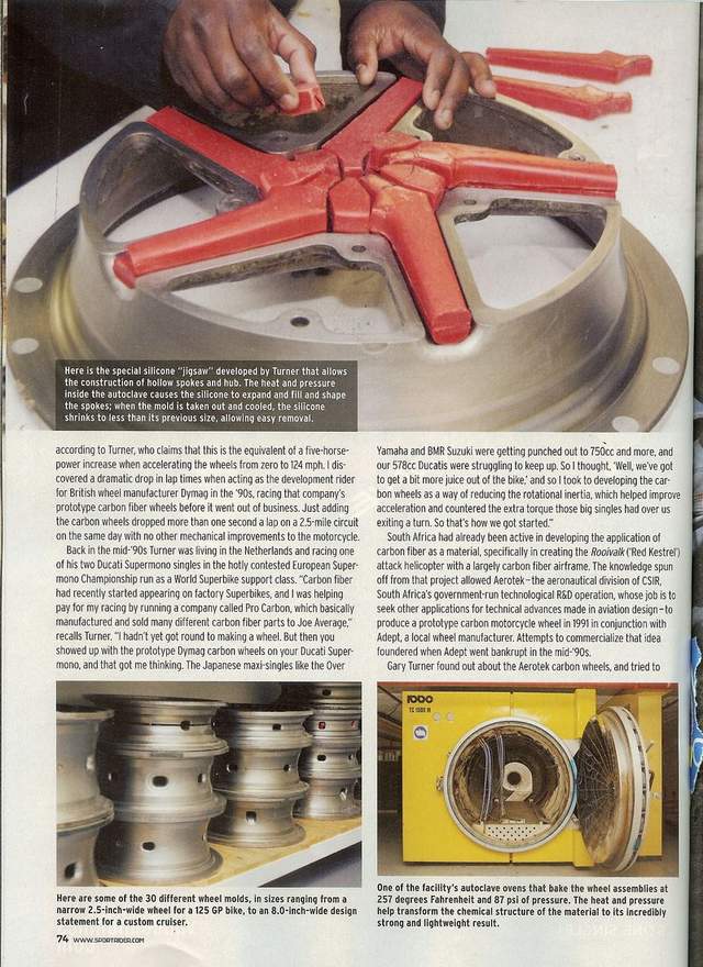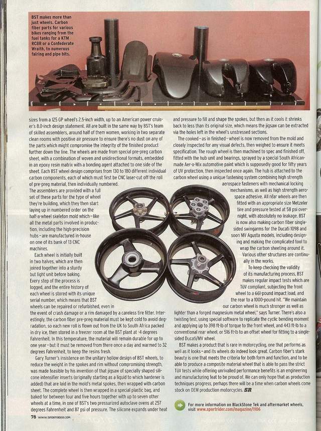Here is scanned article about south African motorcycle carbon wheel manufacturer BST.