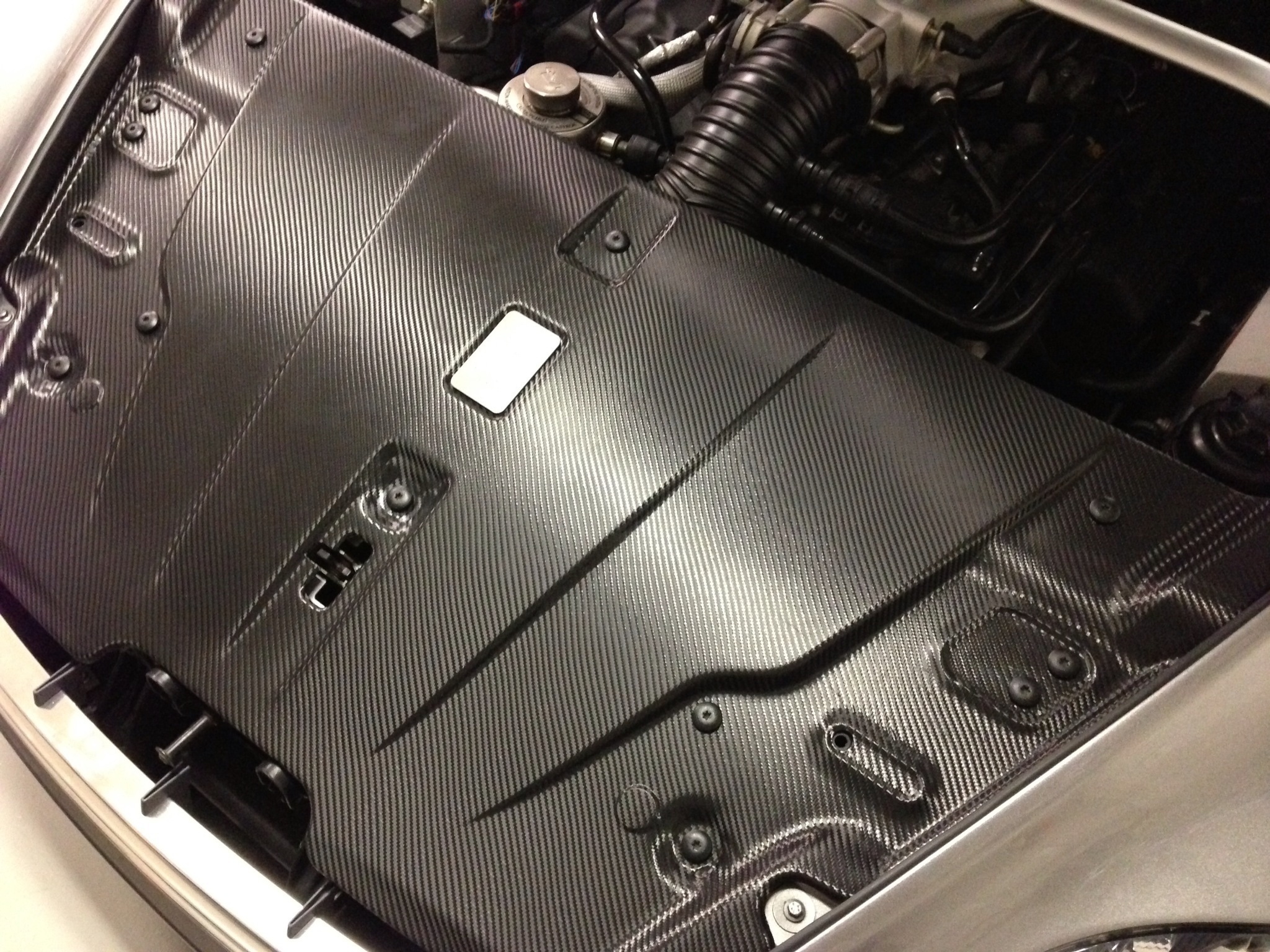 You don't need pro finish to do the "V". My advice would be skin some more parts to get a proper feel for how the CF is to work with on compound curves before you even think about attempting the "V" It's not as easy as it looks, a flat panel is one thing, the panel in your picture is something completely different. Look at the recesses along what will be the "V" join.