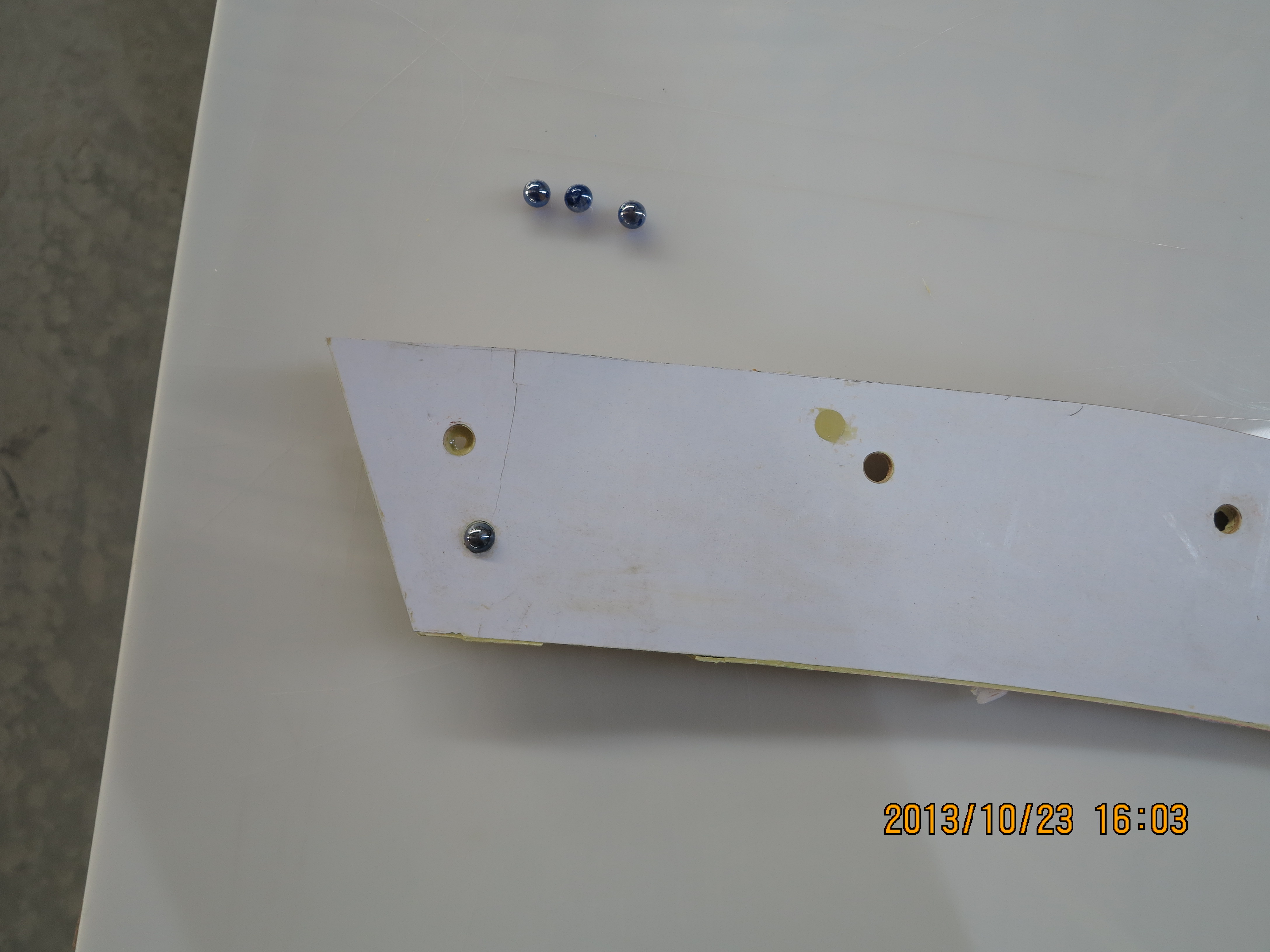 Marbles are imbedded halfway using body putty, the parting board is installed, waxed, and the side of the plug where the marbles are, is laid up.