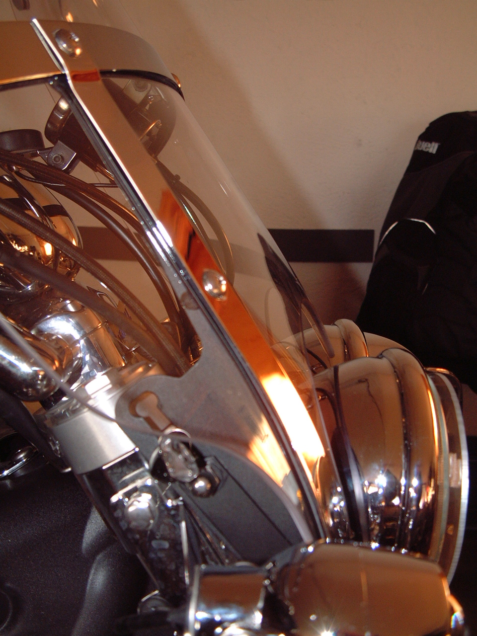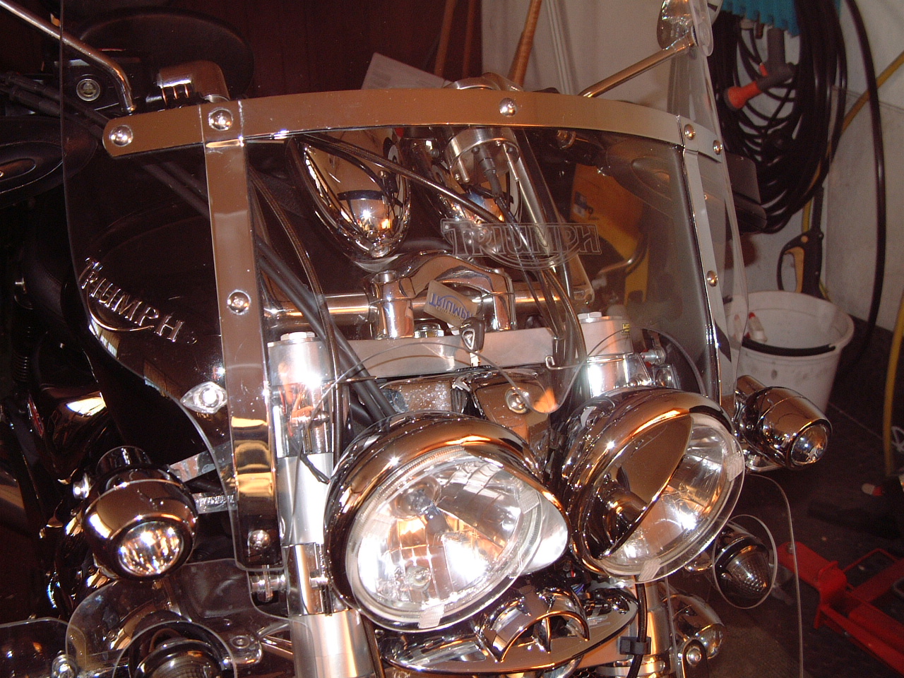 My thoughts are to fill entirely the space inside the steel frame so that I also get some shade from oncoming headlights. And to allow me to remove the silly headlight chrome eyebrow things. Most of the chrome behind the screen is about to get blacked out using PlastiDip too.