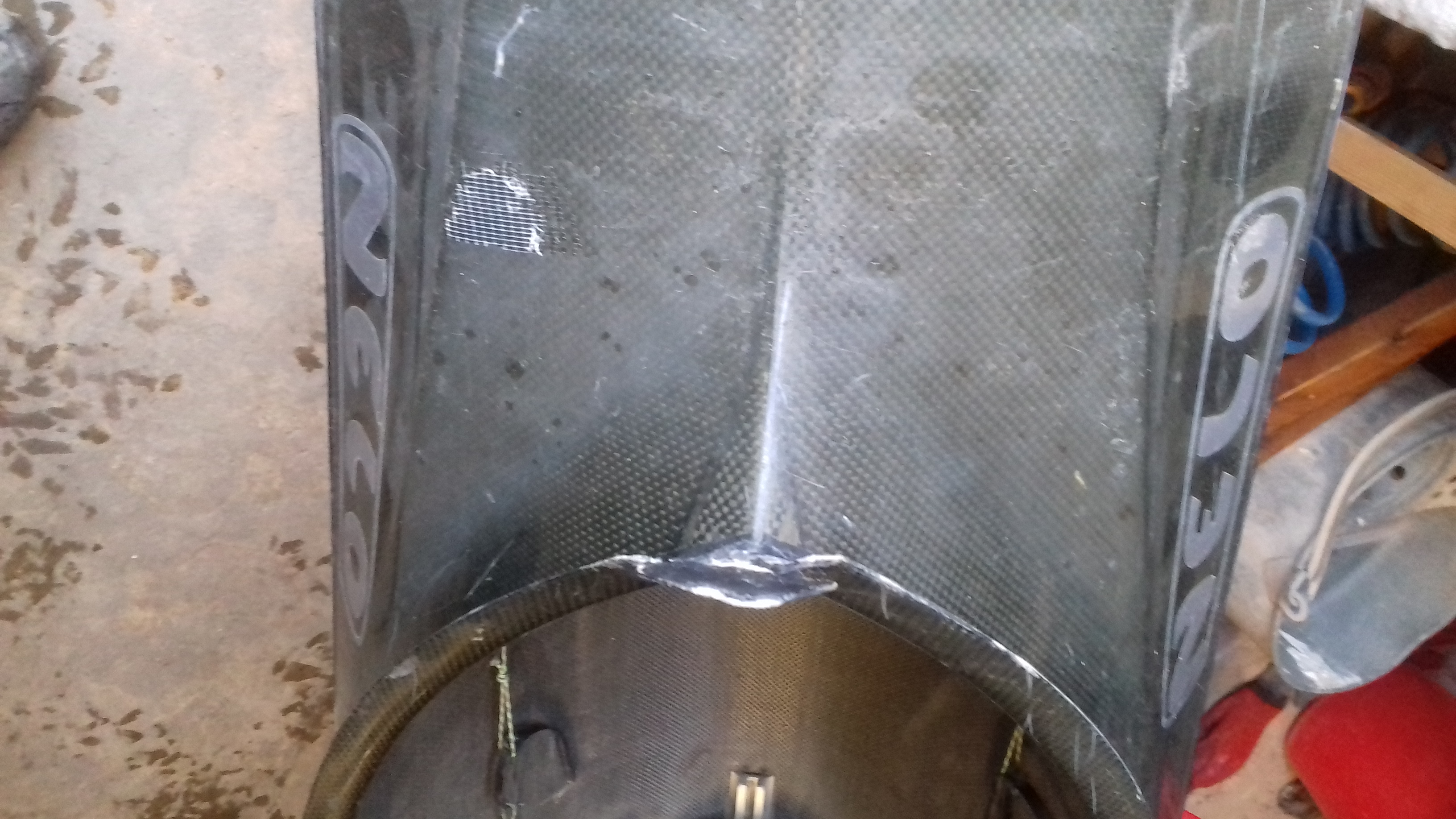 From the look of the original material it looks like a simple 2/2 twill around 200g so i would get something like this: Carbon Fibre 2/2 Twill 3k 200g 1m Wide You would also need a resin such as our XCR Epoxy Coating Resin  to laminate the repair.
