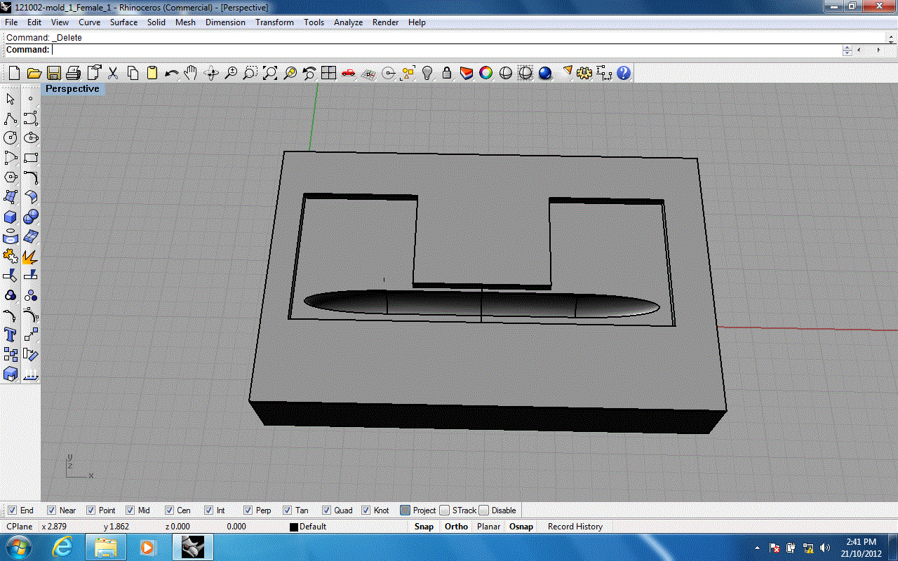 The basic part is approx. 3" long and has a deep 0.6" cavity about 0.3" wide in the shape of a Doug out canoe.